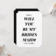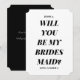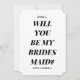 Modern and minimalist bridesmaid proposal card featuring the text "Will You Be My Bridesmaid?" in bold chic typography on the front and placeholders for your details in matching lettering. Cards reverse to a text placeholder for your message in handwriting script.