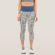 Chic Botanical Blue and Cream Pattern Capri Leggings