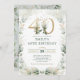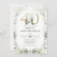 Elegant botanical-themed 40th birthday invitation featuring beautiful watercolor greenery in sage green and gold