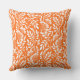 Elegant and chic square throw pillow design features a trendy leafy white floral foliage pattern with beautiful branches and sprigs blooming with leaves and berries. Note, the orange background can be customised to coordinate with your home decor colour scheme.