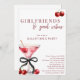 Chic Bow Cherry Martini Galentines Dinner Party Invitation