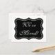 Stylish Change of address calligraphy postcard. Custom background colour ie black and white. Housewarming / Moving postcards with ornate swirly text design. Custom move text; We have moved! We've moved! Add your new address on the back. Classy moving cards for posh new home or business location. Chic elegant script typography text. Change quantity to get the cheapest price per card. Pretty retro vintage look bracket shape.