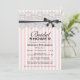 Chic, French-inspired design is perfect for celebrating the lovely bride-to-be at her Bridal Shower with a feminine flair. White lace and a black ribbon border is set on a pretty pink and white stripe background, with formal typography.