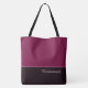 This lovely fashion forward tote bag shows the word "Bridesmaid" in white text colour over the darkest Cassis with the upper tote bag in custom Cassis with Warm Orchid accents. Has plenty of room for personalised text. Graphics and text are on both sides of this tote bag. Black handle. Customise further or buy as shown.