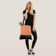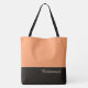 This lovely fashion forward tote bag shows the word "Bridesmaid" in white text colour over the darkest Latte Brown with the upper tote bag in custom Cantaloupe with Coconut accents. Has plenty of room for personalised text. Graphics and text are on both sides of this tote bag. Black handle. Customise further or buy as shown.