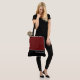 This lovely fashion forward tote bag shows the word "Bridesmaid" in white text colour over black with the upper tote bag in custom Crab Apple Red. Has plenty of room for personalised text. Graphics and text are on both sides of this tote bag. Black handle. Customise further or buy as shown.