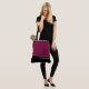 This lovely fashion forward tote bag shows the word "Bridesmaid" in white text colour over black with the upper tote bag in custom Cassis. Has plenty of room for personalised text. Graphics and text are on both sides of this tote bag. Black handle. Customise further or buy as shown.