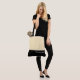 This lovely fashion forward tote bag shows the word "Bridesmaid" in white text colour over black with the upper tote bag in custom Champagne. Has plenty of room for personalised text. Graphics and text are on both sides of this tote bag. Black handle. Customise further or buy as shown.