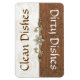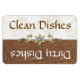 Practical and stylish clean / dirty dishwasher magnet done in a oak brown damask pattern on one end, and an ivory damask pattern, on the opposite end of the magnet. Graphics of a gold tone jewel decorates the middle of the magnet and brown and white text reads, Clean Dishes and Dirty Dishes, on the other end. Great little gift idea for anyone.