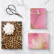 Chic Brown Leopard Print Pink Gold Wrapping Paper Sheet