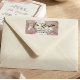 Elevate your wedding invitations or daily correspondence with this romantic, artistic design. Features dreamy mauve and blush pink abstract paint strokes accented by printed faux gold script typography. Easy to customize with your details.