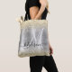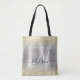 Chic brushed metal silver gold faux glitter personalised monogrammed Tote Bag. Beautiful, modern and cool for the trend-savvy and art-loving hip trendsetter. This stylish design would be great for girls who enjoy classy sparkly designs. Add your name and monogram it with a cool and modern calligraphy typography. This makes the perfect sweet 16 birthday, wedding, bridal shower, anniversary, baby shower or bachelorette party gift for someone that loves glam luxury and chic styles. Whether for valentines day, Christmas or any occasion in general this cute tote bag will make a great gift idea for any woman who loves modern sparkly elegance. PLEASE NOTE: These are flat printed graphics - no real glitter, jewels or raised parts.