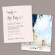 Budget-friendly light pink wedding reception invitation featuring "Happily Ever After Party" in a chic modern script, your marriage announcement and invitation in classic serif typography and your names in a signature-like script. The back features your photo, names and wedding and reception dates.