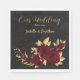 Chic and elegant wedding paper napkin featuring beautiful burgundy flowers and some elegant gold leaves on black background.