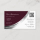 Chic Burgundy and White Silver Decor with QR-Code Business Card