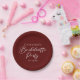 This elegant burgundy bachelorette party paper plate features classic white script for a bride who loves the upscale, chic events. Celebrate your friend with this romantic, rich red color on this chic, minimalist bachelorette party decor.