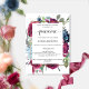 Delight your friends and family with this breathtaking floral quinceanera invitation, showcasing your quinceañera details with exquisite background with gorgeous watercolor bouquet with flowers in burgundy red, berry, maroon, plum and dusty blue and navy tones. Modern calligraphy details and gold elements. Ability to add mass and reception details, which can easily be changed to reception and dance details instead. Elegant back with watercolor stains and floral bouquet with quinceañera's name. Part of our "Elegant Burgundy, Red Berry and Blue Quinceañera" collection with a variety of coordinating products. Same invitation also available in Spanish.