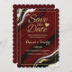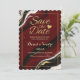 Set a tone of luxury for your upcoming nuptials with this stunning Save the Date invitation. Featuring a dramatic burgundy, black, and white marble swirl background, this design is elevated by flowing veins of shimmering gold glitter. The card is finished with a sophisticated scalloped edge, adding a unique, romantic touch to your wedding announcement.