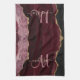 Chic Burgundy Gold Glitter Agate Custom Monogram B Tea Towel