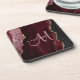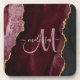 Chic Burgundy Gold Glitter Agate Custom Monogram Coaster