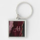 Chic Burgundy Gold Glitter Agate Custom Monogram Key Ring