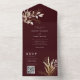 Chic Burgundy Gold Greenery QR Code RSVP Wedding All In One Invitation