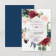 Chic Burgundy Navy Floral Frame Wedding RSVP Card