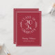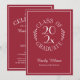 Send elegant graduation invitations for your graduate's celebration featuring a chic white on burgundy red typography emblem which reads: CLASS OF [YEAR] GRADUATE with the words curving around the year in the middle with curved botanical leaves along each side of the circular design. Below the emblem is the graduate's name in a white script font and their school in a sleek serif font. A fine white rectangle creates a border near the edge.