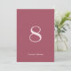 Simple and minimal monochromatic burgundy table number and name wedding table flat card.