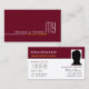 Chic Burgundy White Simple with Monogram and Photo Business Card