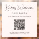 Custom light pink window cling decal for your business featuring your name showcased in a chic signature script and business type in modern lettering. Input your website address to create a QR code for customers and clients to scan for a list of your products, services, hours, etc.