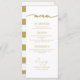 The gold and white menus, programs and name tents were beautiful with the colorful flowers .