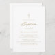 This chic calligraphy gold baptism invitation is perfect for a rustic baby baptism or christening. The simple and elegant design features classic and fancy script typography in gold.