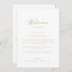 This chic calligraphy gold wedding welcome letter is perfect for a rustic wedding. The simple and elegant design features classic and fancy script typography in gold.