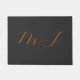 Chic calligraphy grey orange monogram name initial doormat
