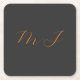 Chic calligraphy grey orange monogram name initial square paper coaster