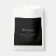 Simple minimal design black and white stylish bride and groom names personalised thank you favour bags.