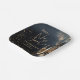 Stylish New Year's Eve party square paper plates feature a champagne glass, clocks, confetti and fireworks on a midnight blue background with your party details in chic lettering. MATCHING items in our collection.