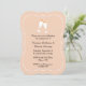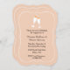 Stylish engagement party invitation done in pale peach, with graphics of two toasting champagne glasses, at the top of the invitation, and a white decorative frame around the edge. Text in black is ready to personalise for your party. Pretty invitation any couple would love.