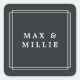 Classic and elegant stickers for your boutique or business feature a soft off-black charcoal background with a thin white geometric border and classic lettering in white.