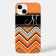 Chic Chevron Pattern Black Grey Orange Monogram Case-Mate iPhone Case