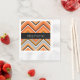 Chic Chevron Pattern Black Grey Orange with Name Napkin