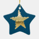 Chic Christmas metallic gold star blue Ceramic Ornament