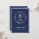 Send elegant graduation invitations for your graduate's celebration featuring a chic white on navy blue typography emblem which reads: CLASS OF [YEAR] GRADUATE with the words curving around the year in the middle with curved botanical leaves along each side of the circular design. Below the emblem is the graduate's name in a white script font and their school in a sleek serif font. A fine white rectangle creates a border near the edge.