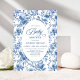 Chic Classic Blue Toile de Jouy Floral Baby Shower Invitation