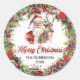 This traditional red and green Classic round sticker is perfect for your Christmas mail communications. Designed with classic Christmas wreath with holly berries and greenery combined with timeless illustration at Santa with his reindeer - all on a classic white background. These elements give it a classic yet elegant feel for your sticker or labels! Discover through the rest of the collection to complete your "The good old man and his reindeer" theme!