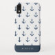 Chic coastal navy blue anchor pattern, personalised with name, iphone case.
