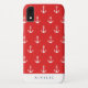 Chic coastal red and white anchor pattern, personalised with name, iPhone case.