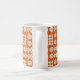 A chic white Coffee Mug, with a pattern of traditional Welsh Tapestry motifs in White on a Brick Red background. This pattern will fit all Mug sizes.