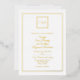 Stylish all season wedding invitation done in white, with real foil accents and text. Bride and groom's monograms decorate a square, at the top of the invitation and a thin double frame surrounds the front side. The back of the invitation is done in white. Personalise all the text fields for your special day. Matching wedding products are available.